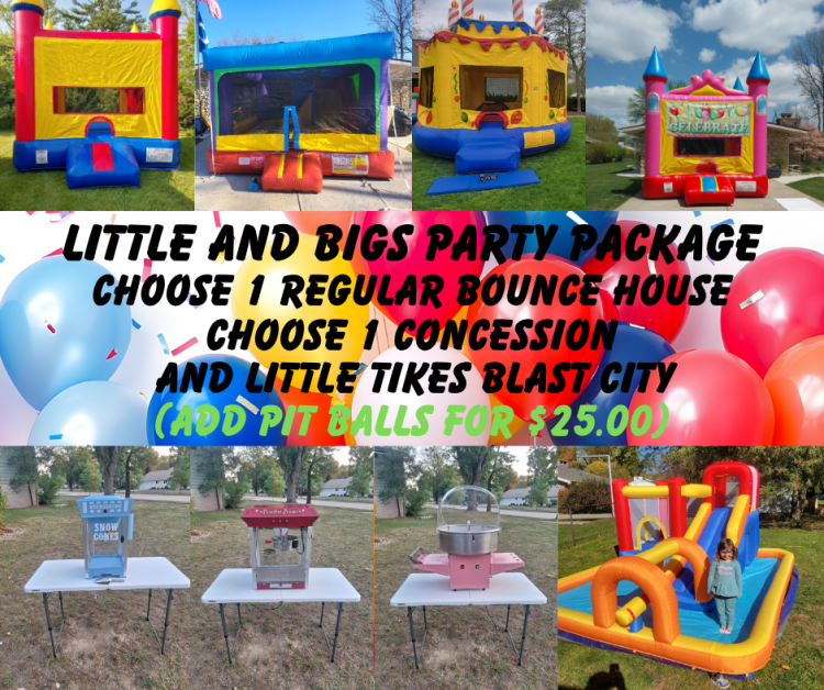 Little Tikes Blast CityLittle and Bigs Party Package:Little Tikes Blast City1Dropdown12743265_32595811100 Our Little Tikes Blast City indoor/outdoor Bounce House Combo is perfect for your little ones who just aren't big enough to use the Big Bounce House's. Blast City offers a Bounce House that's easy for smaller children to climb on, Safety netting with parent access, a Climbing Wall up to an enclosed Wet/Dry Slide, with a Pool surrounding it all. And to add a little extra fun, the Blaster Cannon at the bottom of the slide can be sprayed. This Blast City Combo is for 2 to 6 year old's. If Combo is used Dry we offer 1000 plastic pit balls for the pool at an additional $25.00 cost.