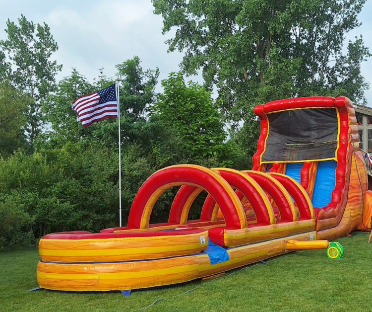 Double the fun with this fiery duo. Our 22ft lava mountain slide paired with the 35ft slip n slide is sure too turn up the heat at any event .
